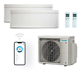 Aanbieding van een zeer complete en luxe multi split van de Daikin Stylish inclusief standaard montage. Het systeem bestaat uit 1 buiten unit van 5 kW met 1 binnen unit van 3,5 kW en 1 binnen unit van 2,5 kW van A merk. Zowel bij verwarmen als verkoelen mag men rekenen op hoogste energiescore A+++. Maakt slechts 19 decibel geluid en kan daarom dag en nacht aan staan.