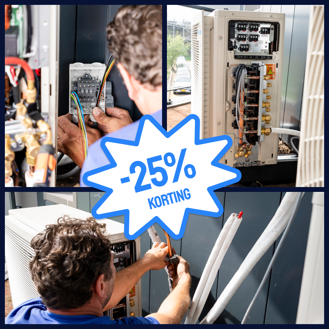Tijdelijk ontvang je 25% korting op extra werkzaamheden bij jouw airco-installatie. Zo maken we het niet alleen comfortabel in huis, maar ook financieel nét wat aantrekkelijker.